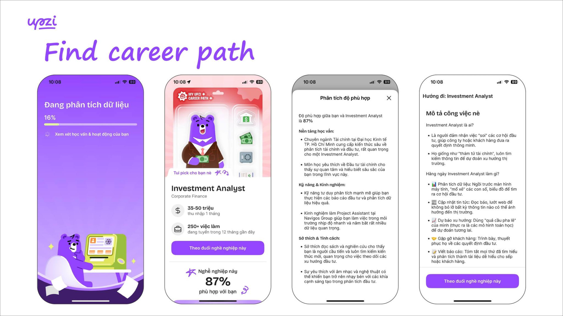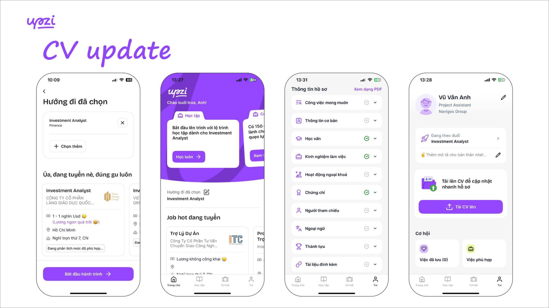 📱 Một điểm nhấn đặc biệt của chương trình là phần giới thiệu Upzi – nền tảng hướng nghiệp dành riêng cho Gen Z do Navigos Group phát triển. Upzi sử dụng phân tích dữ liệu về học tập, hoạt động và sở thích của người dùng để đưa ra đề xuất nghề nghiệp phù hợp, đi kèm mô tả công việc, kỹ năng cần có, mức thu nhập và xu hướng tuyển dụng. Với giao diện thân thiện và hệ thống đánh giá thông minh, Upzi trở thành công cụ hữu ích đồng hành cùng sinh viên trên con đường định hướng nghề nghiệp. Hướng dẫn chi tiết về cách sử dụng ứng dụng được đính kèm ở hình cuối bài.