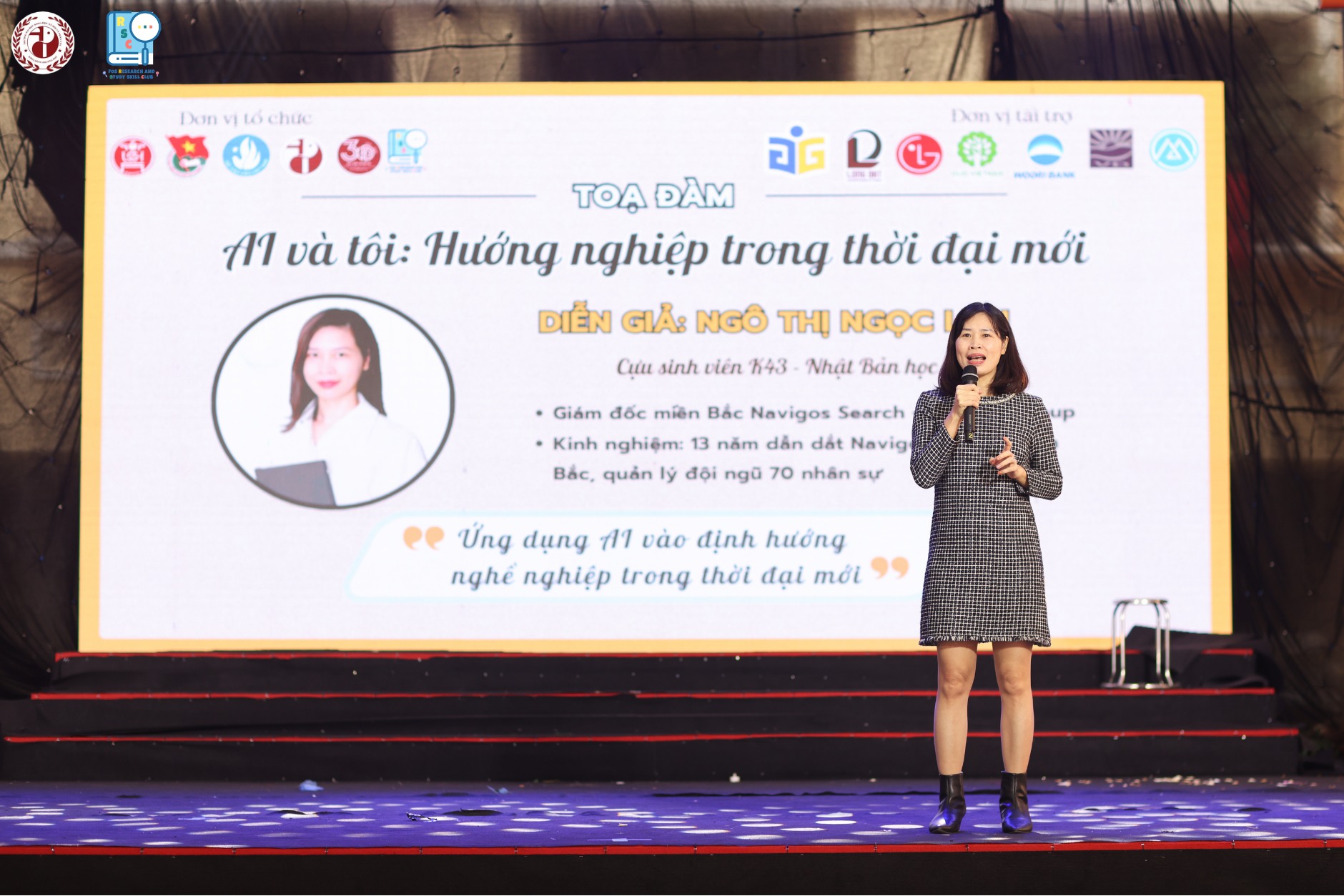 🎤 Tọa đàm vinh dự chào đón ba diễn giả nhiều năm kinh nghiệm trong lĩnh vực tuyển dụng và đào tạo: Diễn giả Ngô Thị Ngọc Lan – Giám đốc Navigos Search khu vực miền Bắc; chị Nguyễn Thị Thu Thanh – Nguyên Trợ lý Tổng Giám đốc Sun Group; và chị Mạc Thị Thu Huyền – Quản lý Đào tạo & Phát triển Văn hóa Sun Group khu vực miền Bắc. Sự xuất hiện của các diễn giả đã mang đến những góc nhìn chuyên sâu, giúp sinh viên có cái nhìn rõ nét hơn về hành trình hướng nghiệp trong thời đại chuyển đổi số.