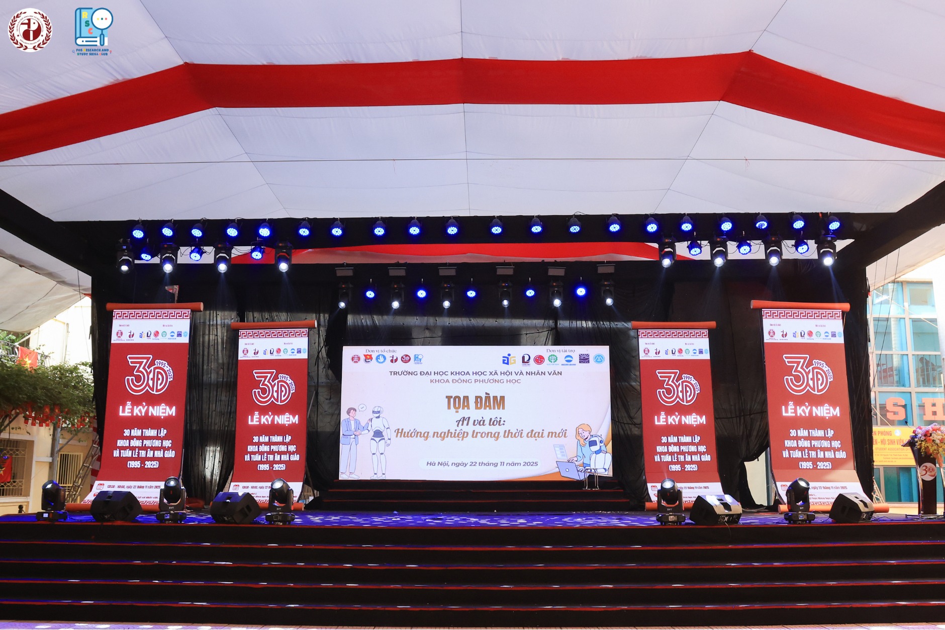 📌 Sáng ngày 22/11/2025, tại sân nhà E – Trường Đại học Khoa học Xã hội và Nhân văn, tọa đàm “AI và Tôi: Hướng nghiệp trong thời đại mới” do CLB Học tập và Nghiên cứu Khoa học Sinh viên Khoa Đông phương học (RSC) tổ chức đã diễn ra thành công với sự tham gia đông đảo của sinh viên trong và ngoài Khoa. Trong bối cảnh thời đại 4.0, khi AI trở thành công cụ không thể thiếu trong học tập và nghề nghiệp, chương trình đã mang đến nhiều góc nhìn thực tế, cập nhật và gần gũi về những cơ hội – thách thức mà công nghệ này đem lại.