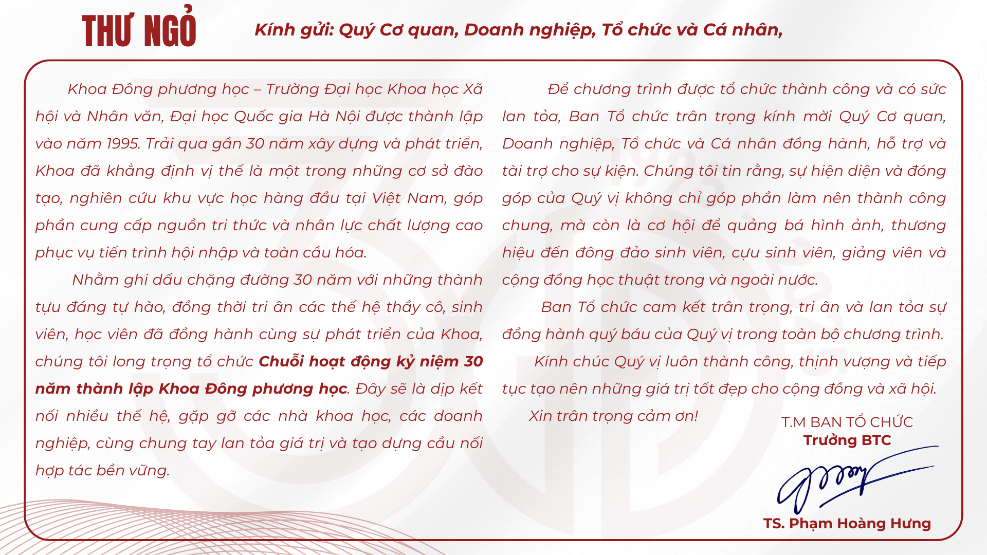 THƯ NGỎ MỜI TÀI TRỢ: Kỷ niệm 30 năm hình thành và phát triển Khoa Đông phương học (1995 – 2025)
