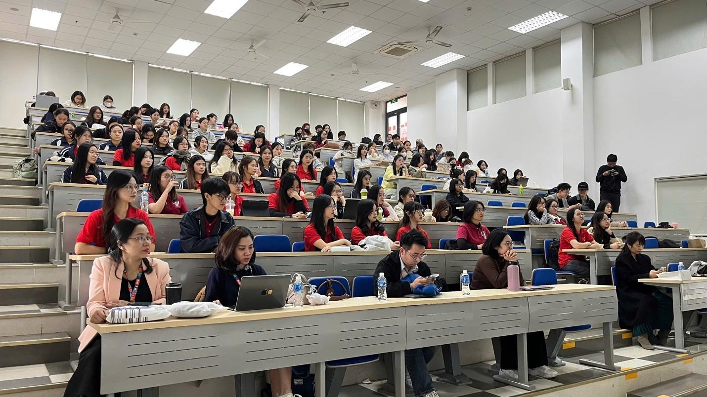 Tiếp đó, TS. Nguyễn Thị Ngọc Hoa - Nguyên Trưởng Bộ môn Trung Quốc học, Khoa Đông Phương học, Trường Đại học Khoa học Xã hội và Nhân văn đã mang đến những chia sẻ sâu sắc và giàu kinh nghiệm về dạy - học Học phần Khái lược Du lịch Trung Quốc đang được giảng dạy tại trường, nhấn mạnh tầm quan trọng, tiềm năng ứng dụng và triển vọng nghề nghiệp của lĩnh vực du lịch trong đào tạo Trung Quốc học. Những phân tích vừa mang tính học thuật, vừa gắn với thực tiễn đã giúp sinh viên có cái nhìn rõ nét hơn về định hướng phát triển nghề nghiệp trong tương lai.